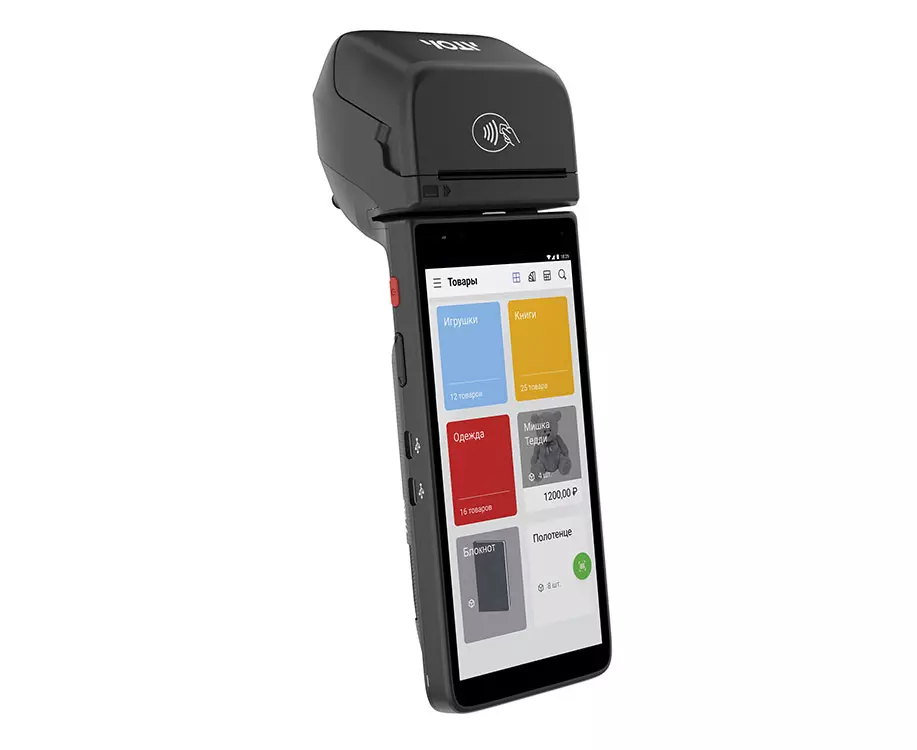Касса позволяет использовать её как для выездной так и стационарной торговли. Оснащена встроенным сканером для работы с маркированными товарами и штрих кодами, а так же имеет встроенный модуль эквайринга для приёмки оплаты по безналичному расчёту.